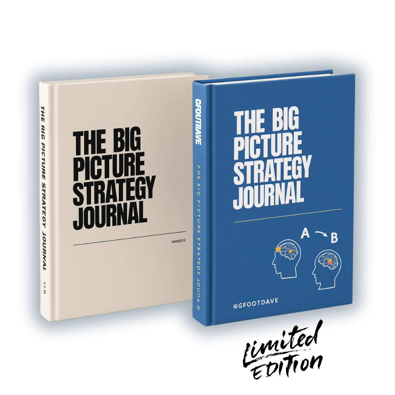 We currently have two copies available of The Big Picture Strategy Journal. The black and white copy, with cream pages is available on Amazon, this was our first available version of the journal and we're very proud of it. It has all the same content as the limited edition version.